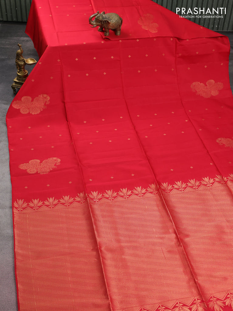 Kanchipuram soft silk saree red with zari woven buttas in borderless style