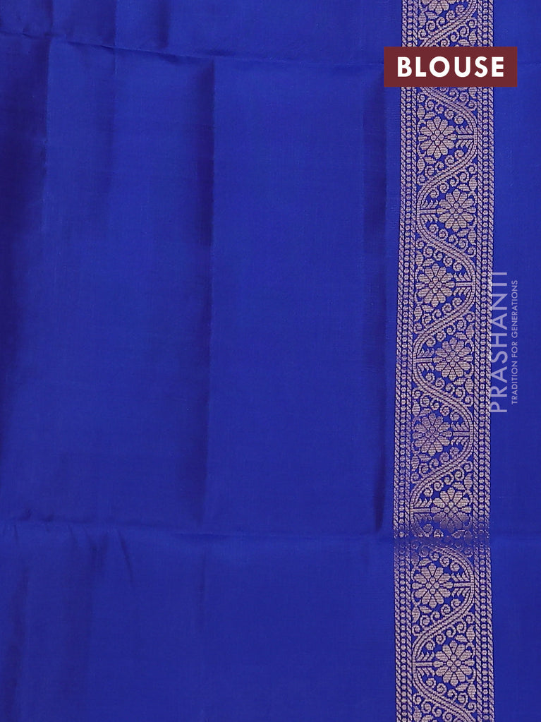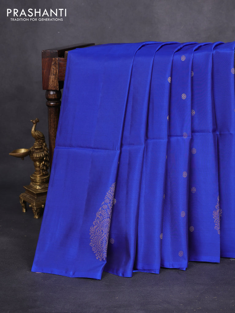 Kanchipuram soft silk saree royal blue with silver zari woven buttas and long silver zari woven paisley butta border