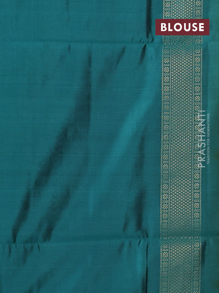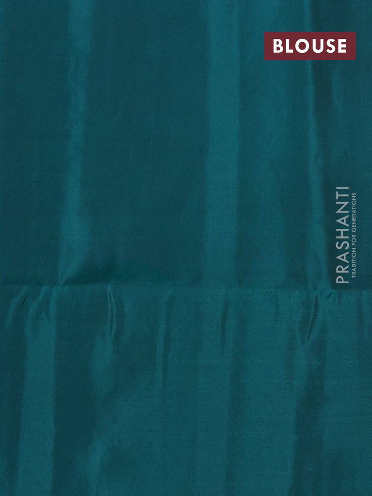 Kanchipuram soft silk saree teal green and dark blue with zari woven buttas and temple zari woven border