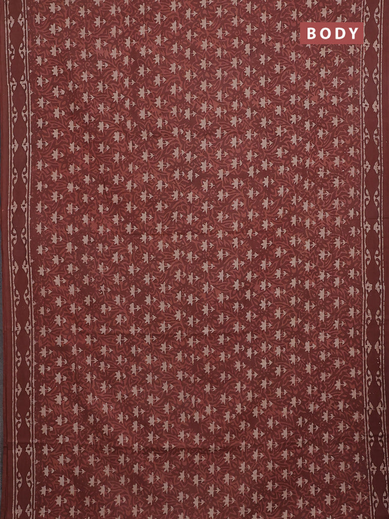 Jaipur cotton saree rustic maroon and black with allover kalamkari prints and printed border