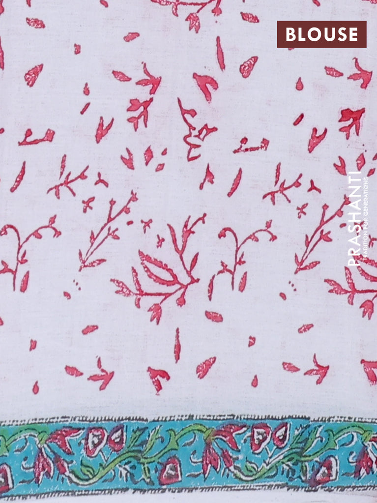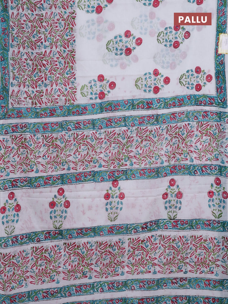 Jaipur cotton saree off white and teal blue with butta prints and printed border