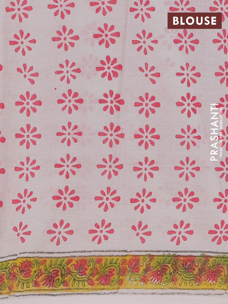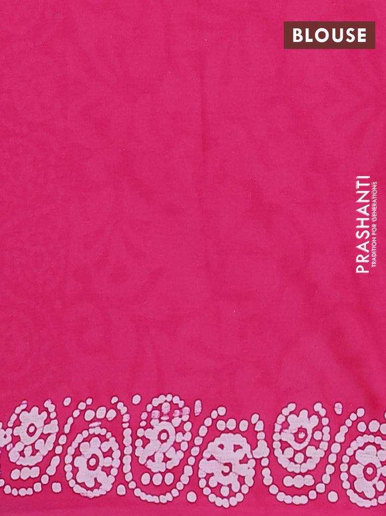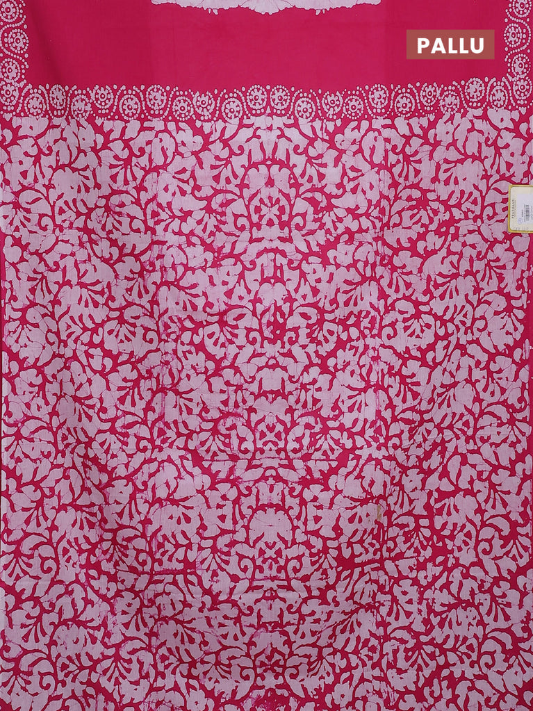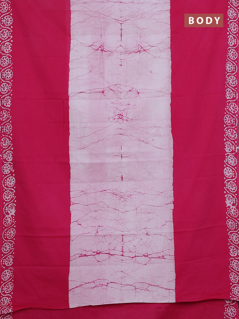 Jaipur cotton saree pink and off white with allover batik prints and printed border