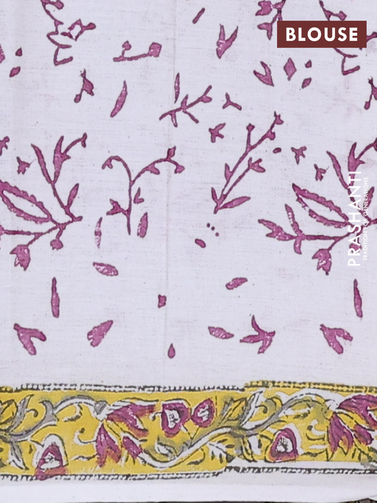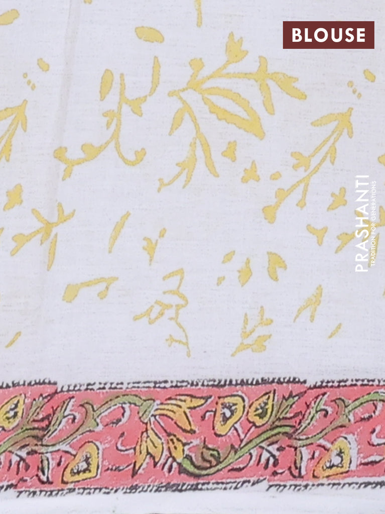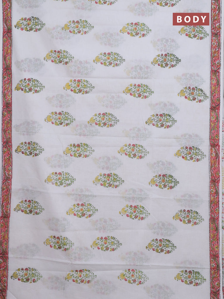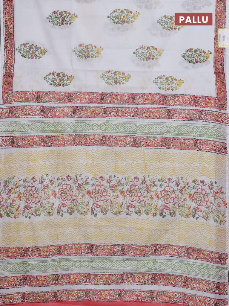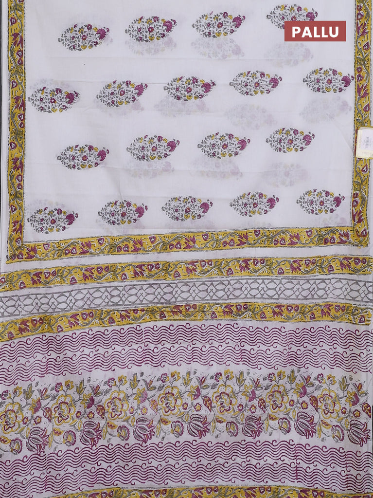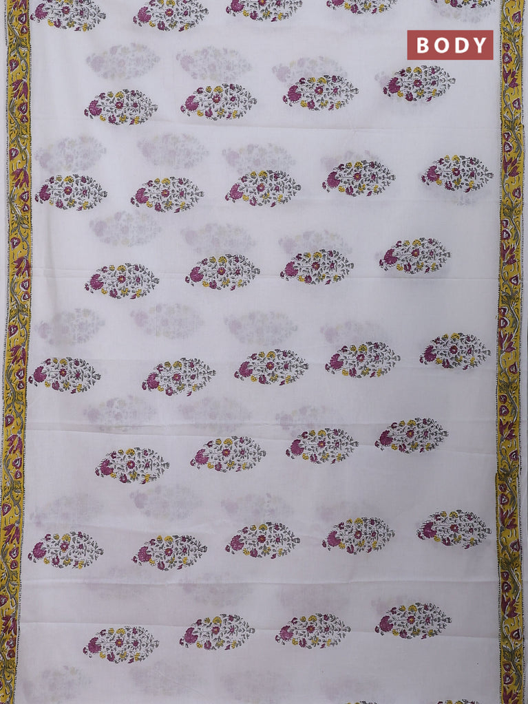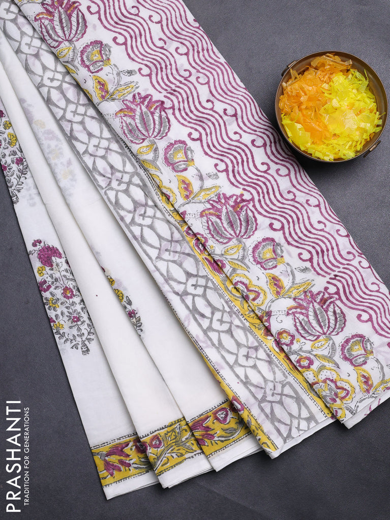 Jaipur cotton saree off white and yellow with butta prints and printed border