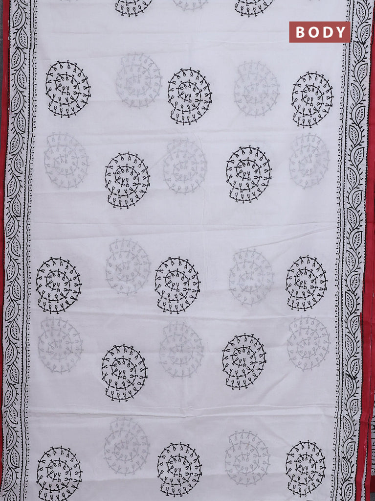 Jaipur cotton saree off white and maroon with warli butta prints and printed border