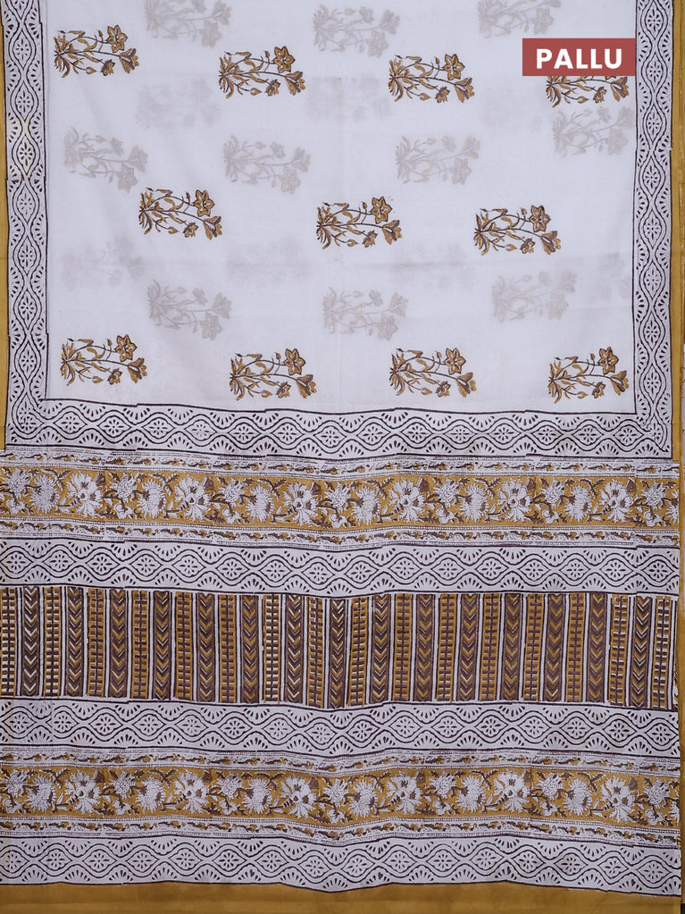 Jaipur cotton saree off white and mustard with floral butta prints and printed border
