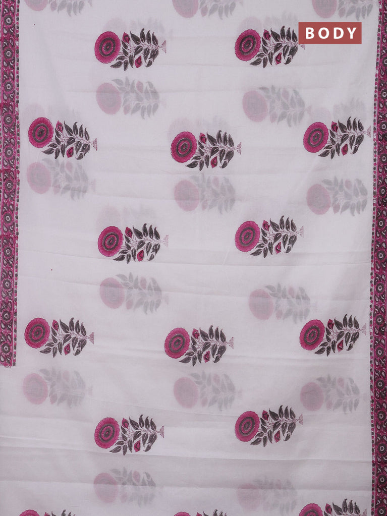 Jaipur cotton saree off white and pink grey with floral butta prints and printed border
