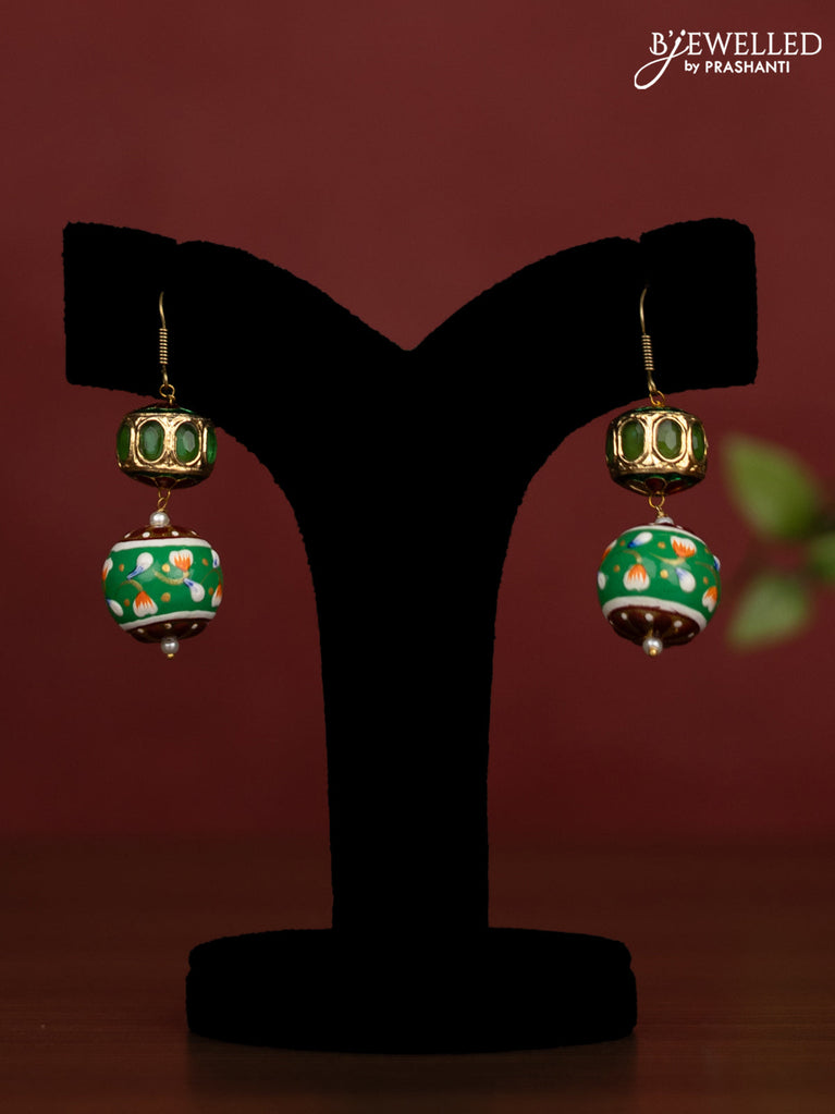 Jaipur crystal beaded green necklace with minakari balls and without earrings