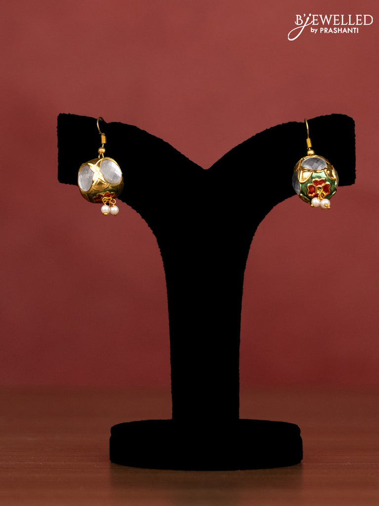 Jaipur crystal dark green and meenakari beads necklace with earrings