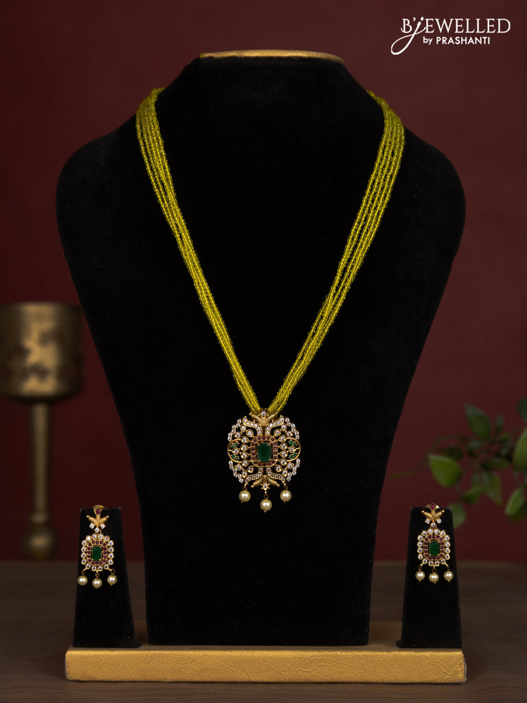 Jaipur crystal beaded multilayer yellow necklace with ruby and cz stones