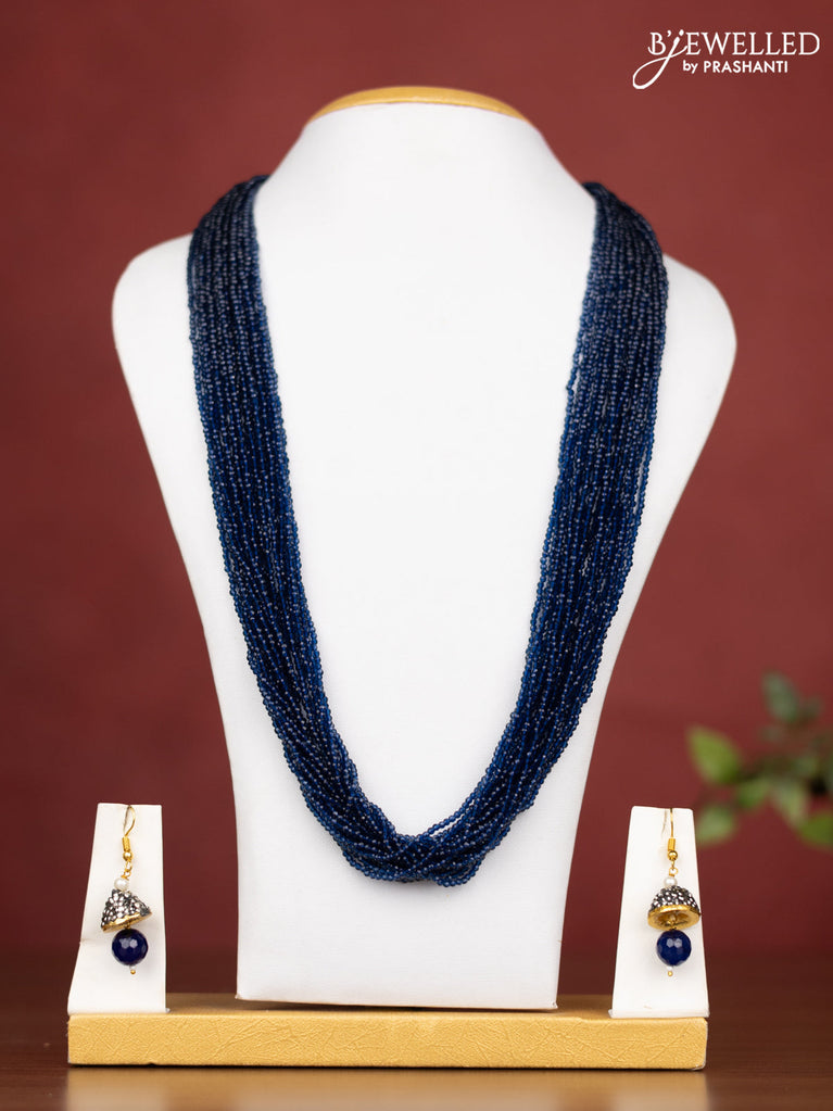 Jaipur multilayer beaded navy blue necklace with lakshmi pendant and pearl hangings