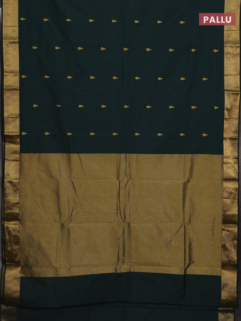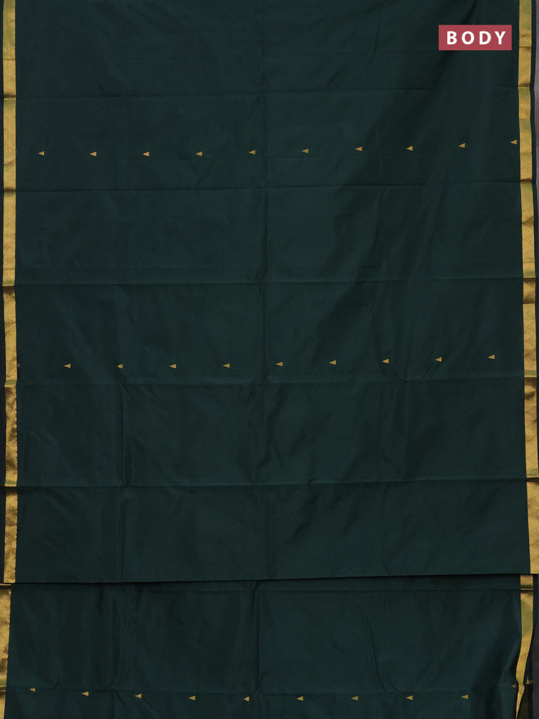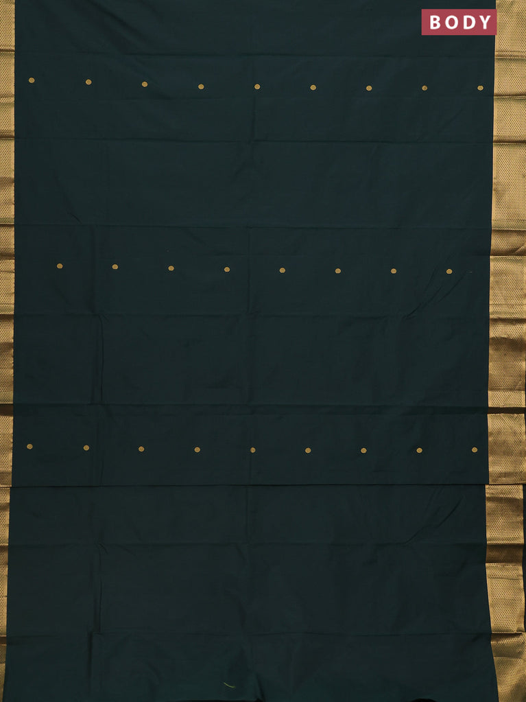 Arani semi silk saree bottle green with zari woven thilak buttas and zari woven border