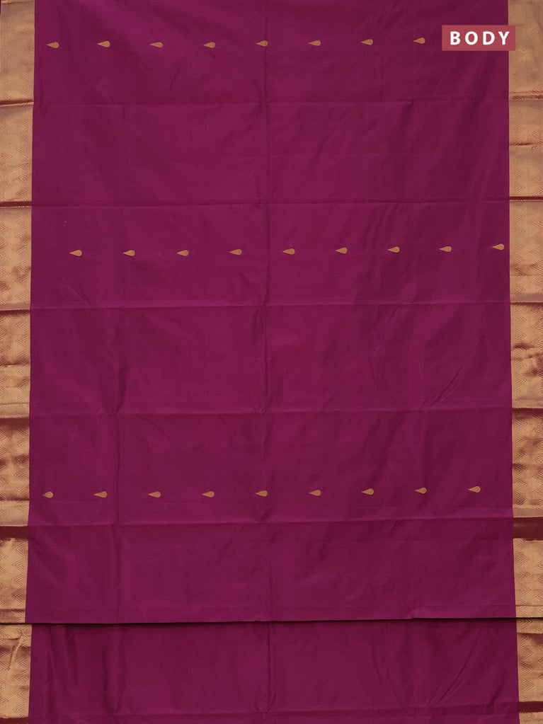 Arani semi silk saree magenta pink with copper zari woven buttas in borderless style