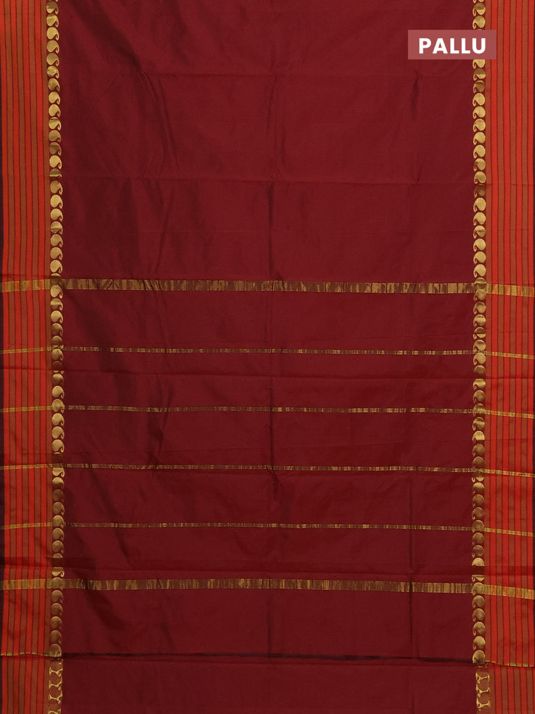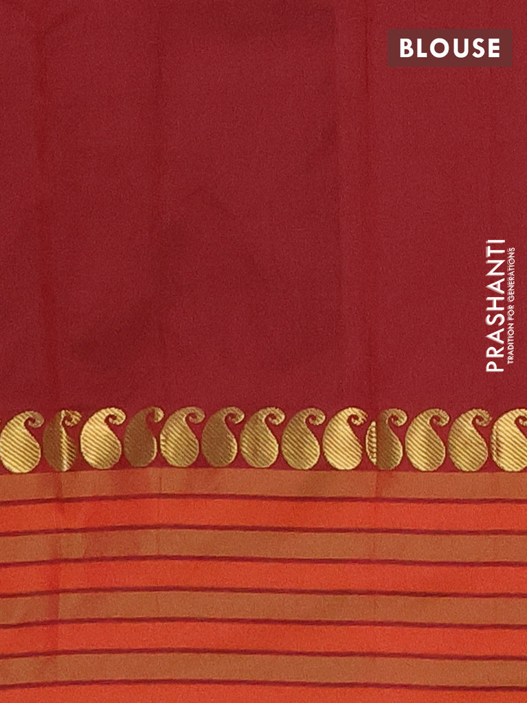 Arani semi silk saree maroon and dual shade of orange with plain body and paisley zari woven simple border
