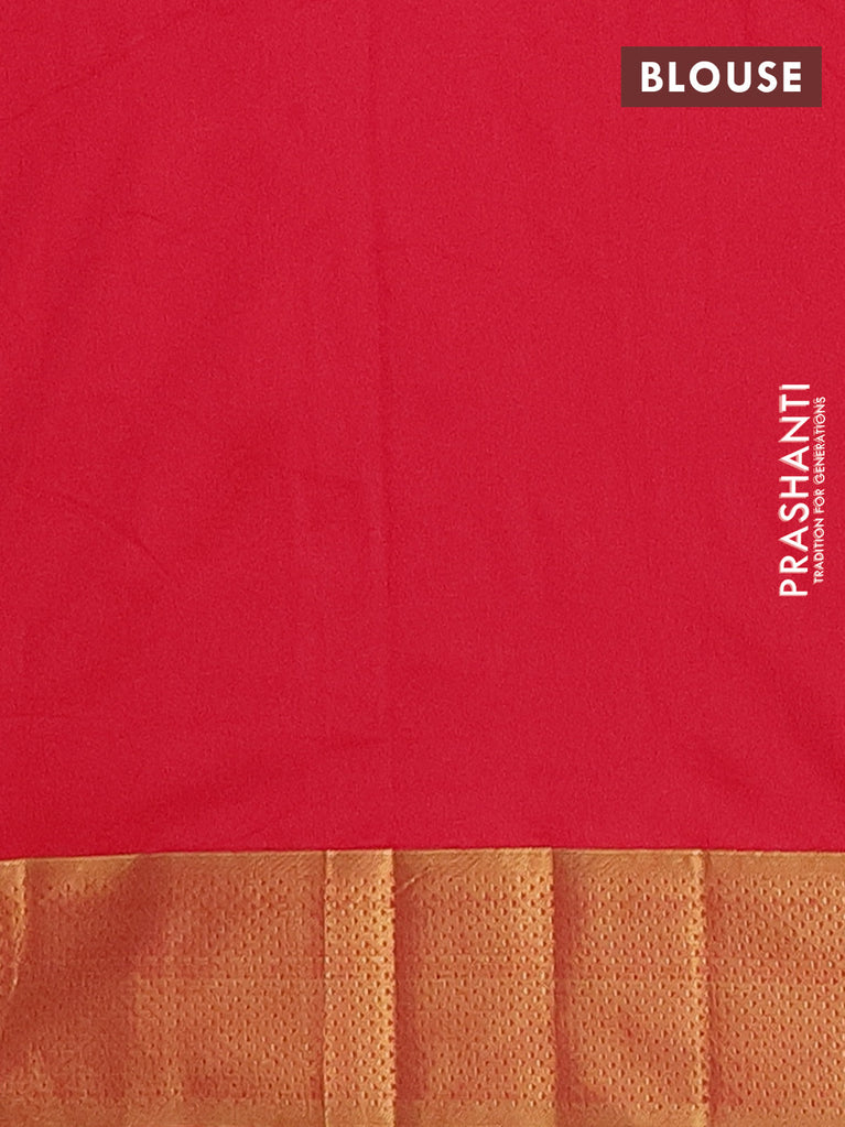 Arani semi silk saree pink and dual shade of pinkish orange with allover copper zari weaves and zari checked border