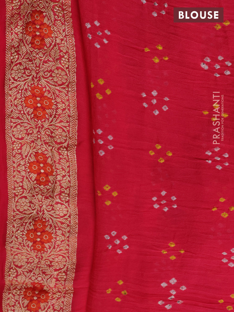 Banarasi georgette saree orange and red with bandhani prints & mina weaves and woven border