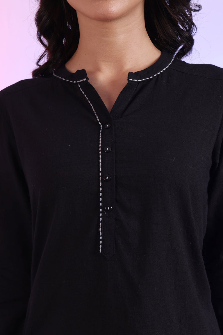 Black Solid Straight Pure Cotton Kurti
