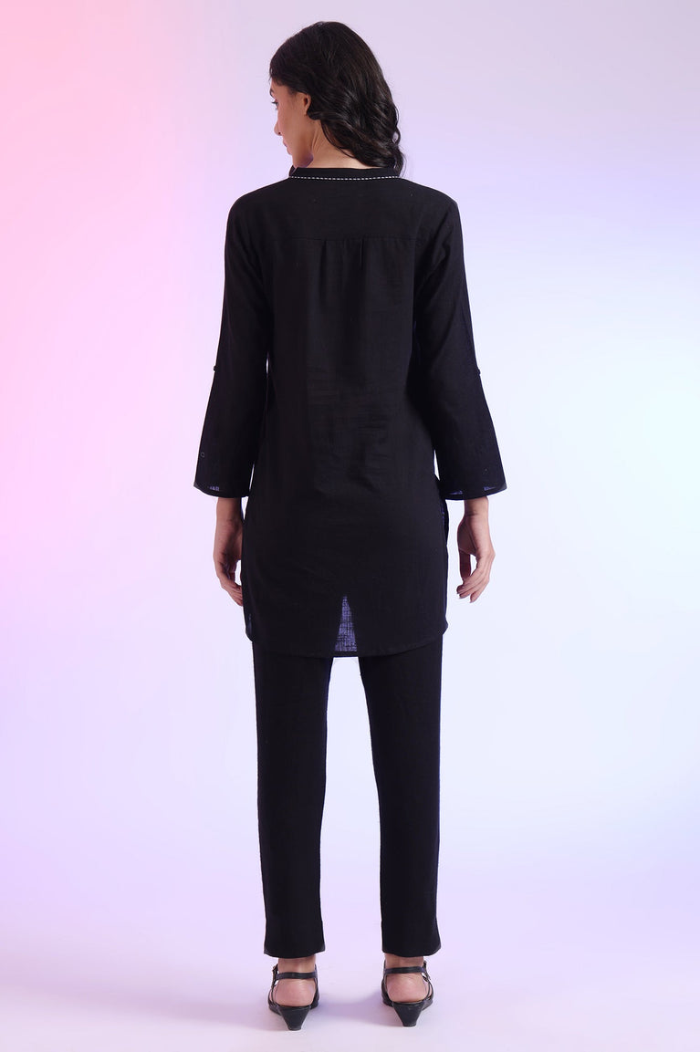 Black Solid Textured Cotton Straight Kurta and Salwar Co-ord Set