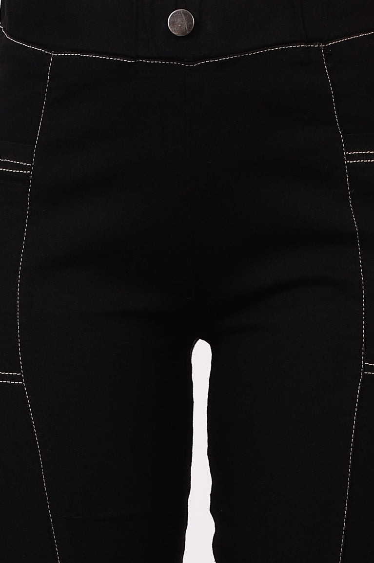 This Is Our Most Trendy And One Of The Best Bottom In The Collection For Your Casual Or Travel Look. It Provide Complete Comfort And Look So Stylish. This Black Straight Pants Has Button Tab At The Hem.