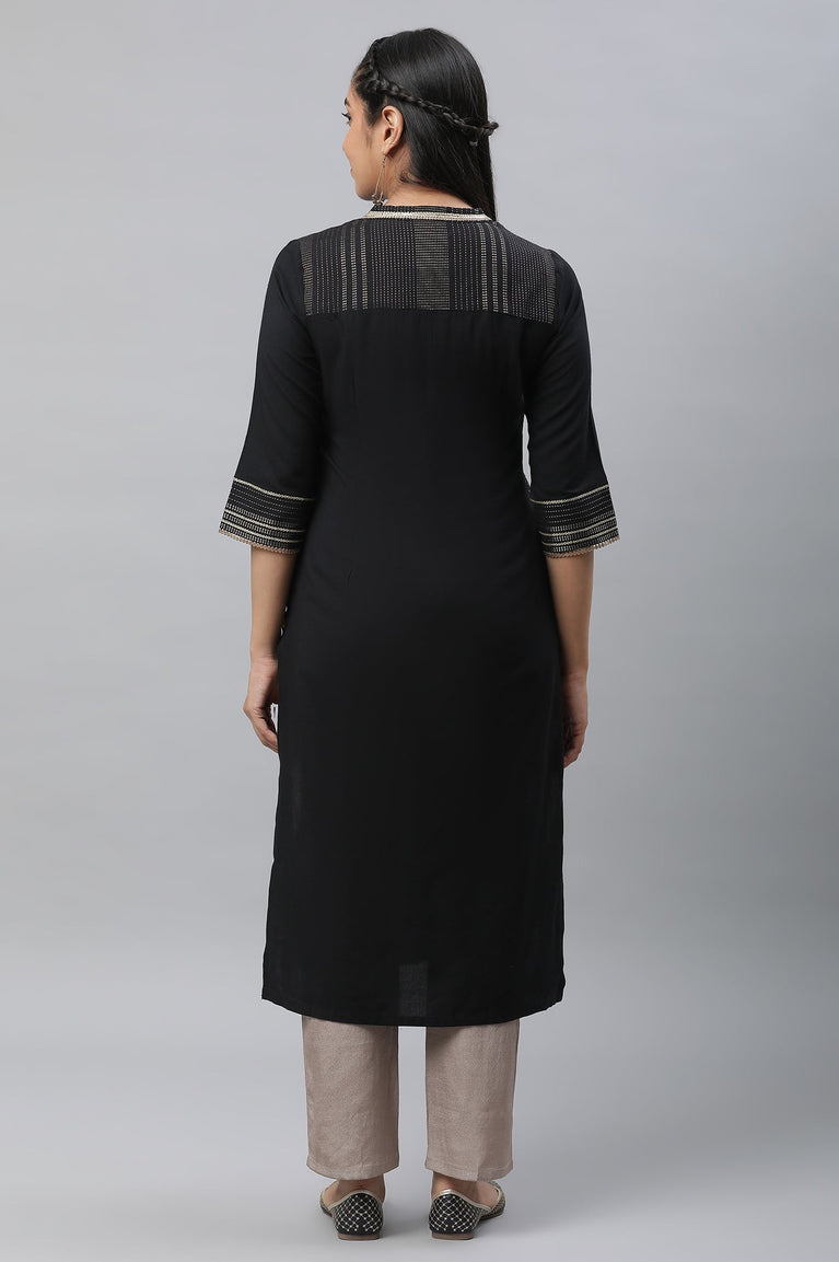 Black Zari Embroidered Ethnic LIVA kurta