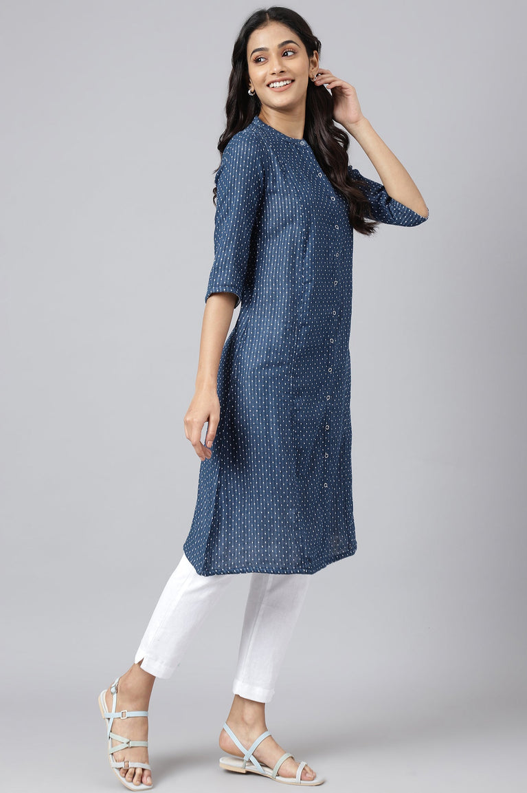 Blue mandarin collar neck 3/4 sleeve kurta with 41" length