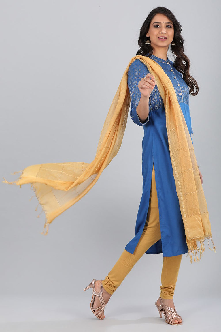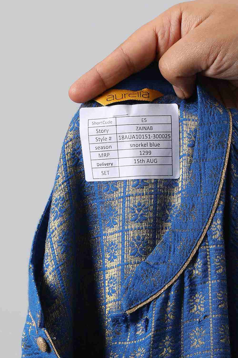 Blue Asymmetrical LIVA kurta with Zari Embroidery