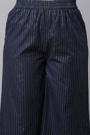 Blue Asymmetrical Embroidered Kurta and Palazzo Set