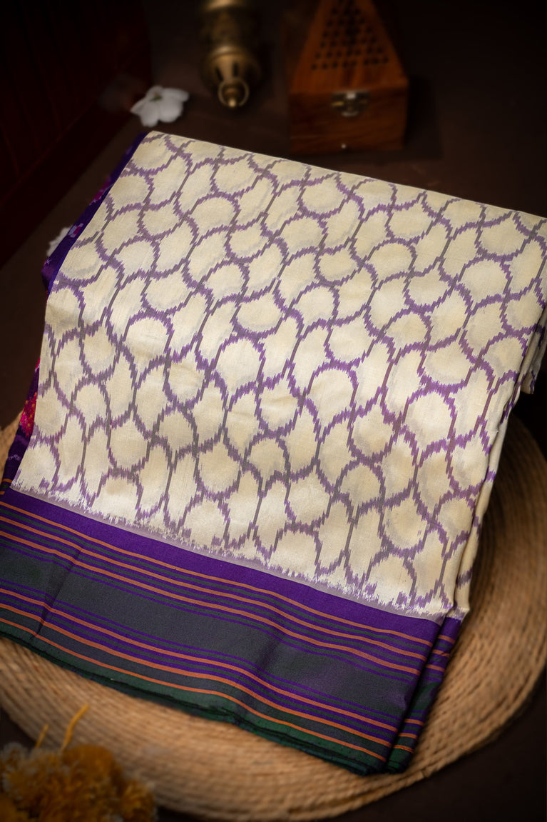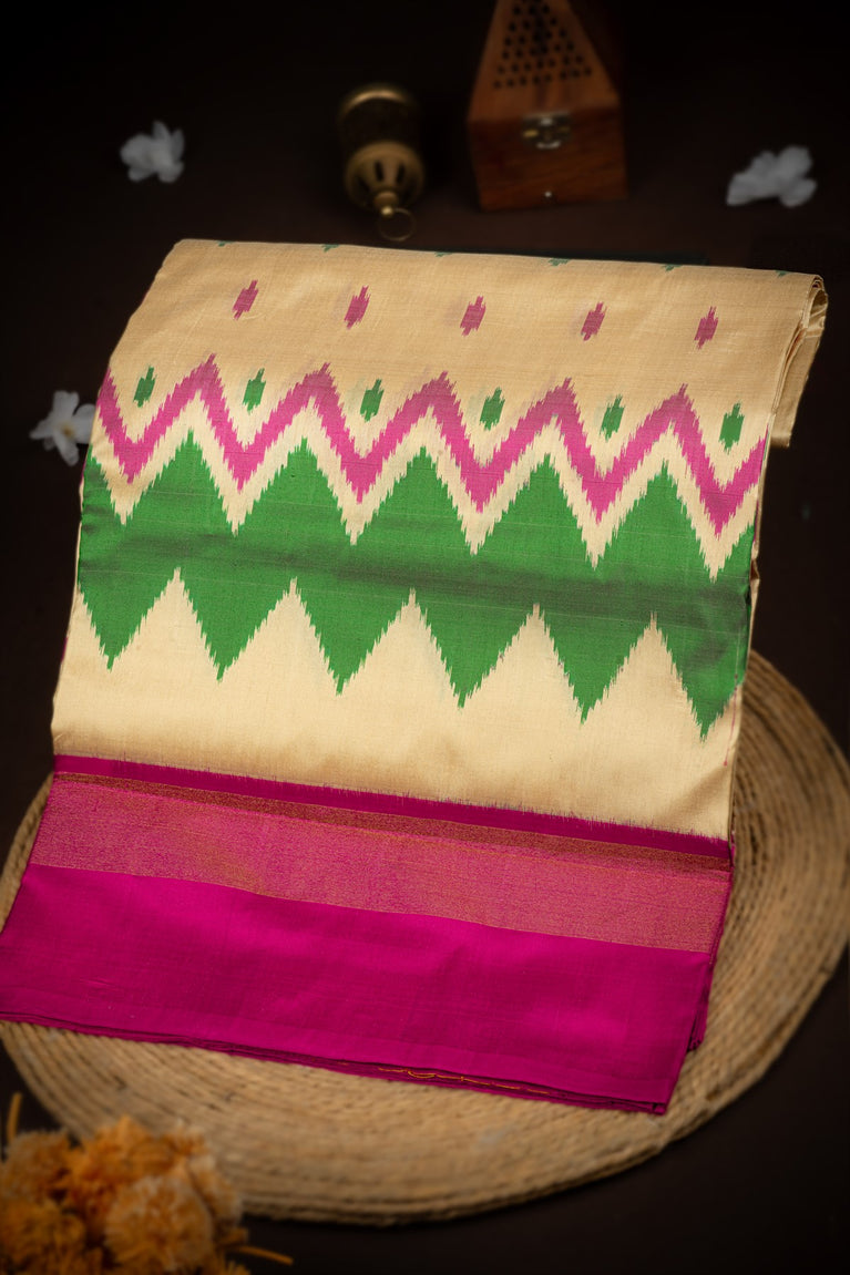 Mandir Dark Cream & Dark Pink Ikat Ikat Saree