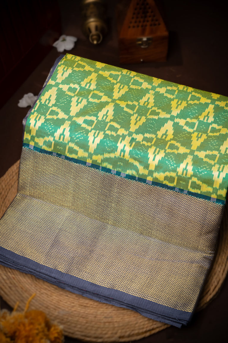 Mandir Green & Blue Kanchi Ikat Ikat Saree