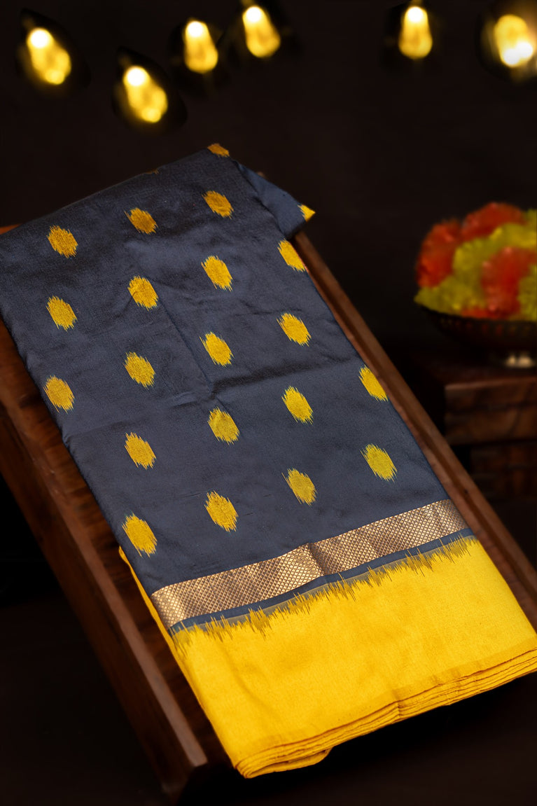Varamahalakshmi Black & Gold Yellow Ikat Ikat Saree
