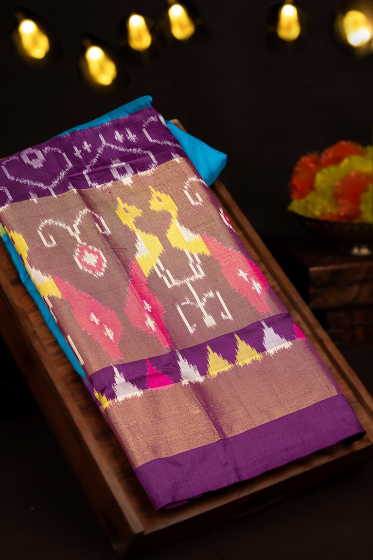 Varamahalakshmi Blue & Purple Ikat Ikat Saree