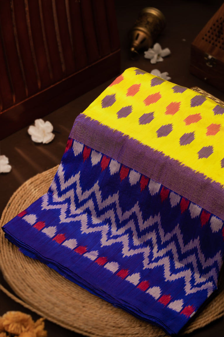 Mandir Yellow & Royal Blue Ikat Ikkat Saree