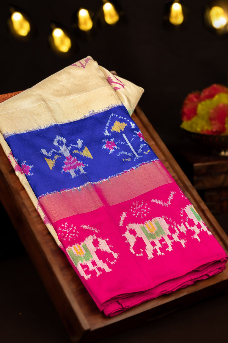 Varamahalakshmi Cream & Royal Blue Ikat Ikat Saree