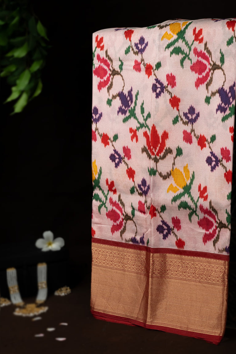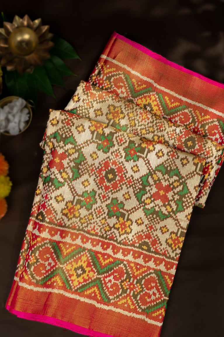 Varamahalakshmi Cream & Pink Patola Ikat Saree