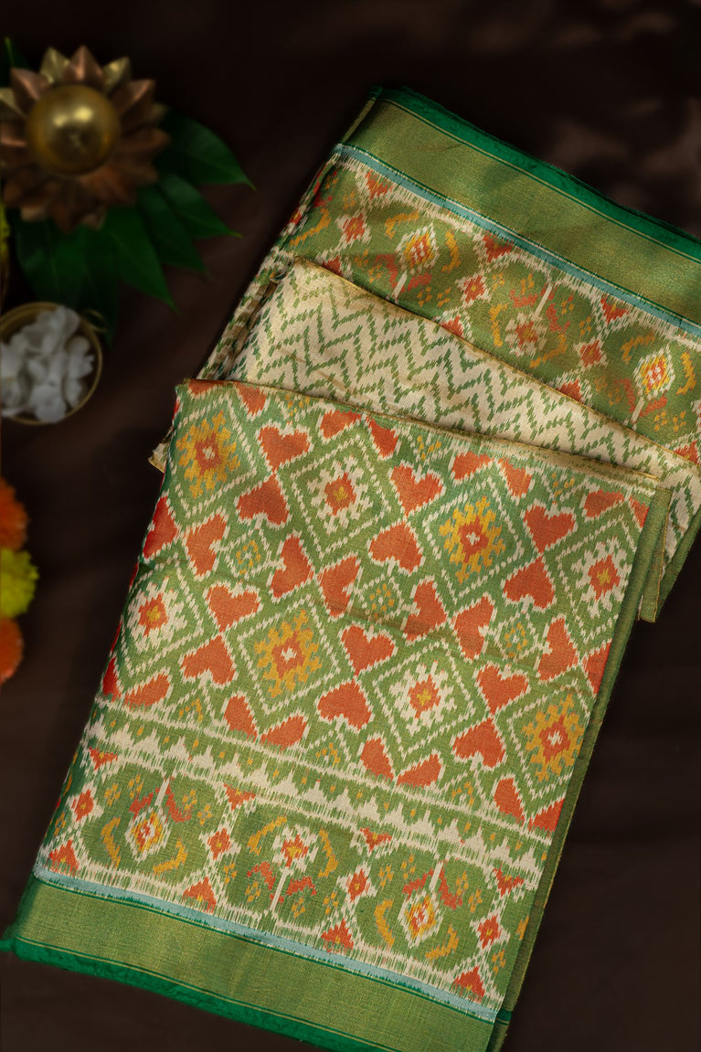 Varamahalakshmi Cream & Mehendi Green Patola Ikat Saree