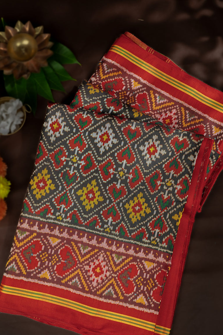 Varamahalakshmi Brown & Maroon Patola Ikat Saree
