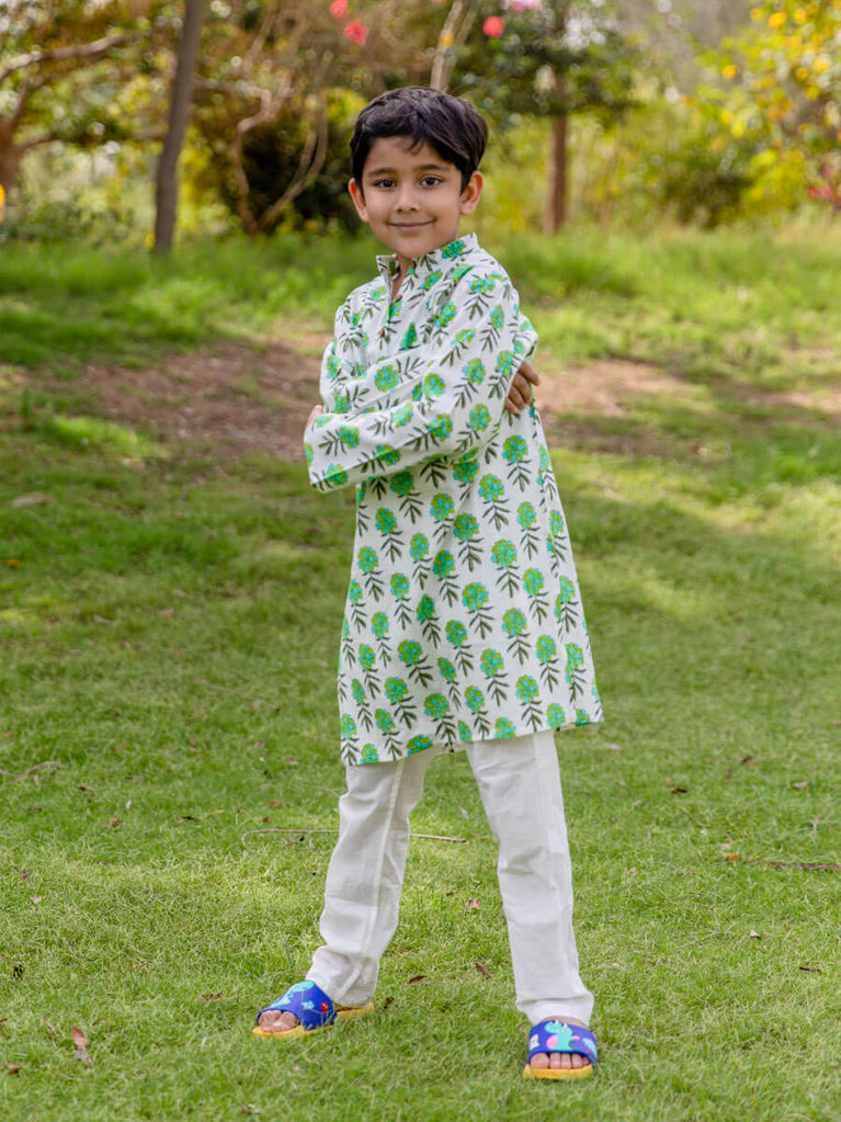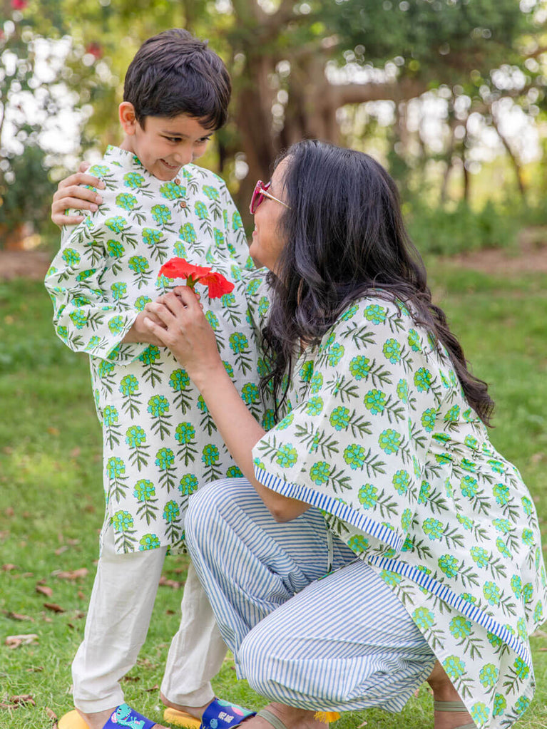 Pink Ikat Organic Cotton Block Printed Long Kurta