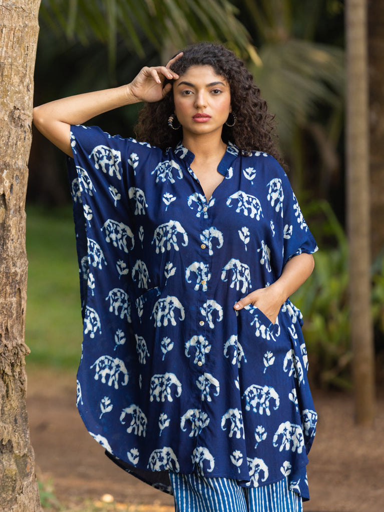 Set of 2 - Breeze Dabu Indigo Shirt Dress and Pants