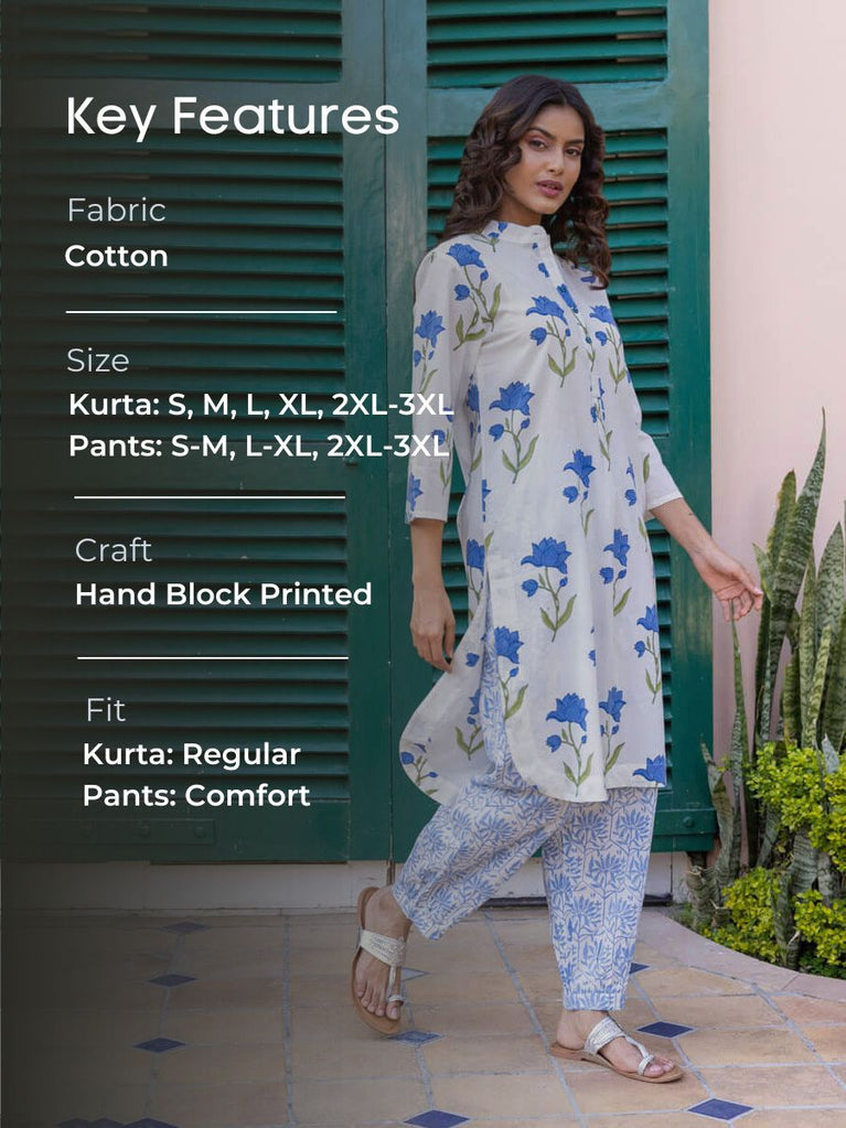 Set of 2 - Blue Lotus Block Printed Kurta and Lantern Pants