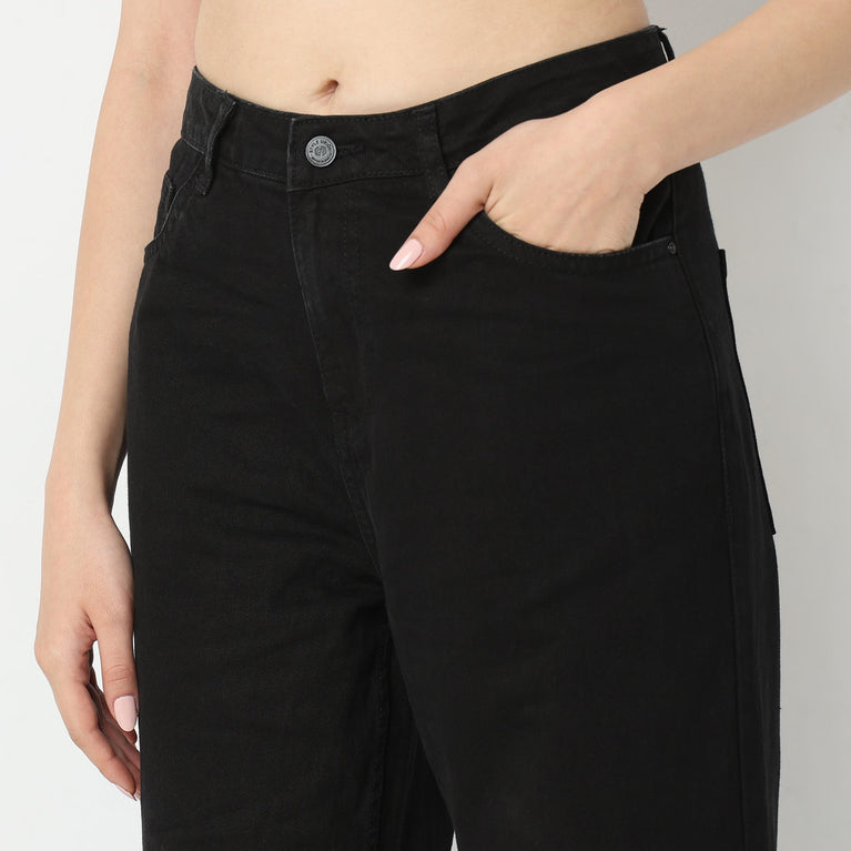 These straight fit jeans has full length, high rise waist. Made from cotton, it is soft and comfortable to wear.