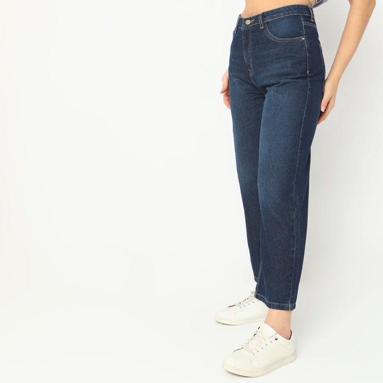 These dark blue jeans from Gia feature a high-rise fit that offers comfortable hold through the waist and a straight-leg silhouette that balances ease with structure. Crafted from a breathable fabric, the design is completed with a button-up zipper fly, belt loops and multiple pockets, making it a dependable staple for everyday dressing.