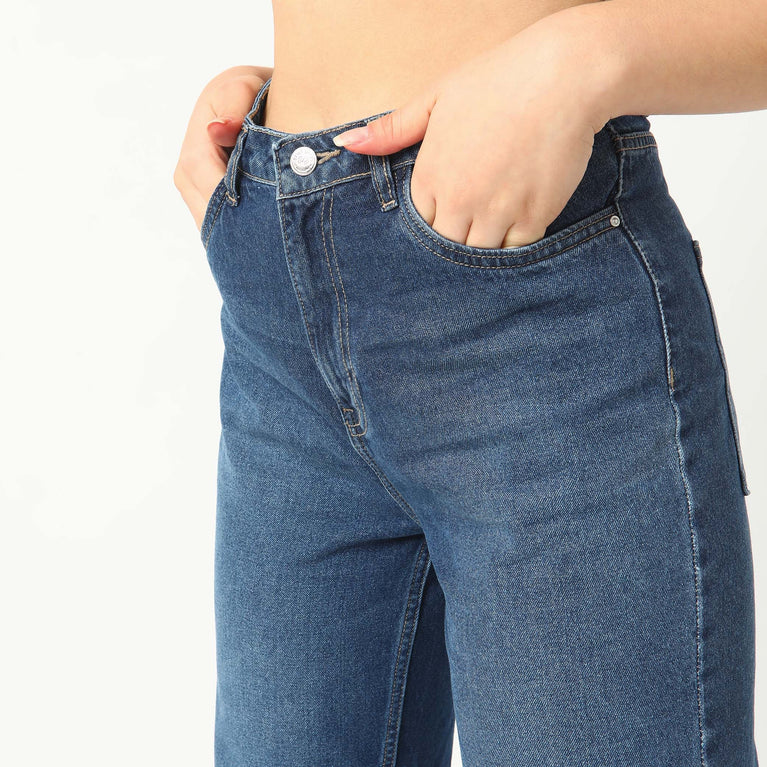 Gia Dark Blue Straight-Fit High-Rise Jeans