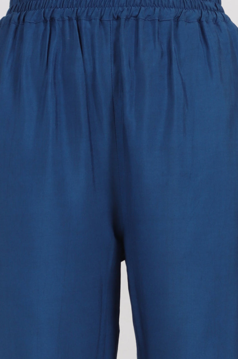 Blue Ethnic Rayon kurta and Flared Culottes Set