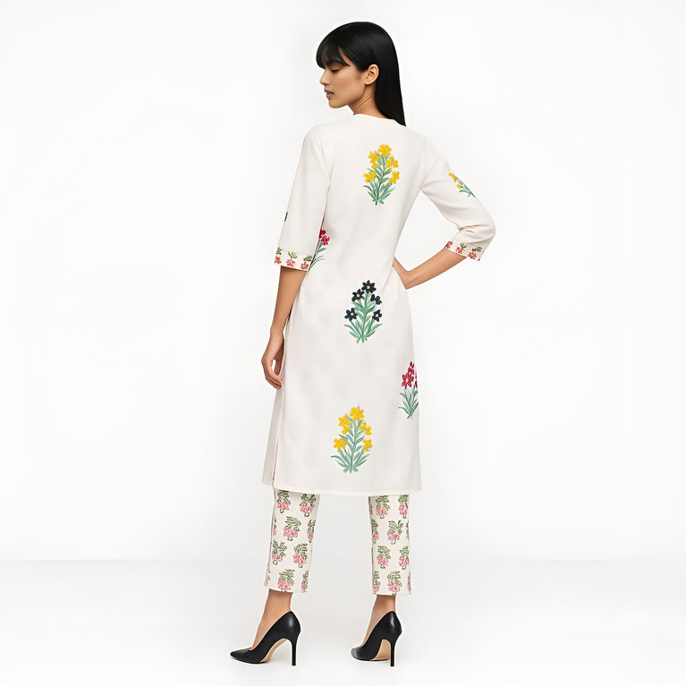 Be It A Travelling Day Or Weekend Picnic Plans, You Will Slay In This Modern Ethnic Set. The Set Includes Straight kurta In V-Neck And Coordinated With Printed Straight Palazzo.