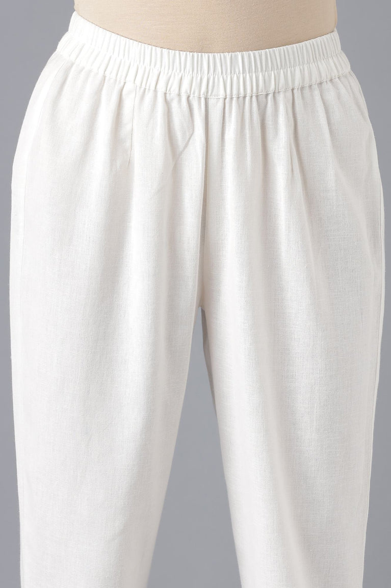 For yoru casual look get this pretty kurta set by Aurelia. The set has yarn dyed dobby kurta, which is an exquisite garment that is perfect for those who value comfort and style. The mandarin collar with V-neckline create an elegant and sophisticated look, while the full mock placket and contrast buttons with lace insert add a unique and captivating element to the design. It is paired with white cotton flax pintuck trouser pants.
