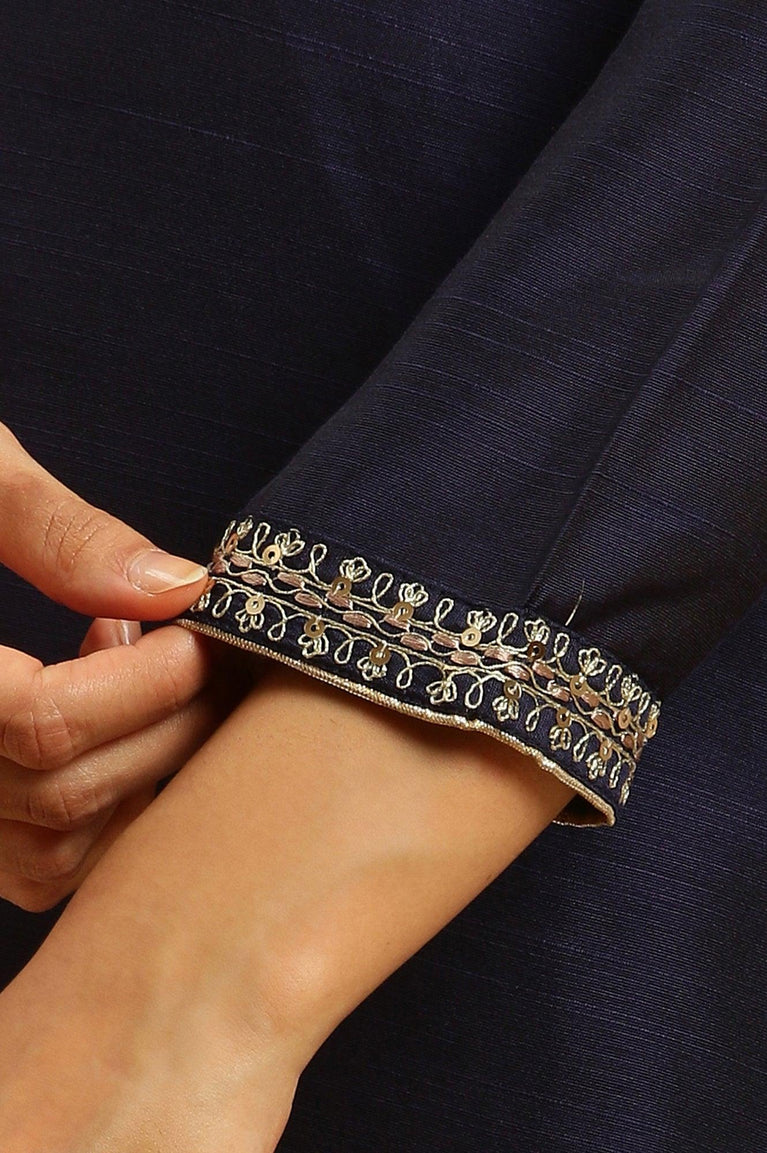 Blue Zari Embroidered Straight Kurta, Pants And Dupatta Set