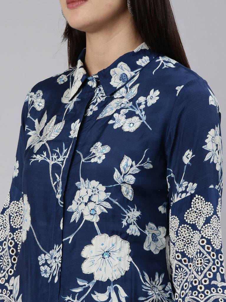 Neeru's Blue Regular Straight Yoke Design Readymade suits