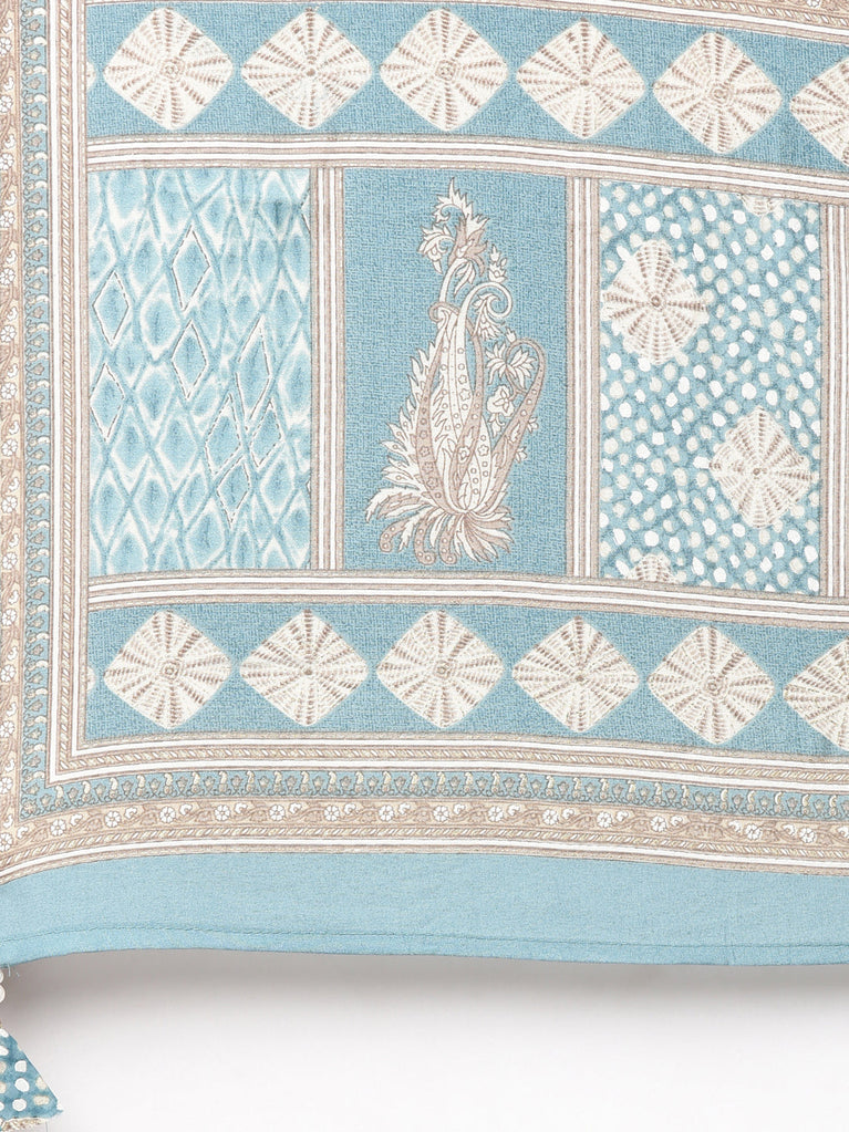 Neeru's Blue Regular Straight Chevron Kurta Sets And Trousers With Dupatta