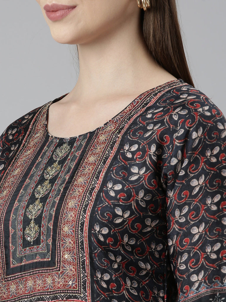 Neeru's Black Color Rayon Fabric Printed Kurta And Trouser
