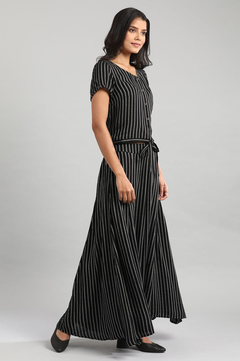 Elevate your wardrobe with this black rayon printed two-piece set, featuring a comfortable palazzo design. Crafted from soft rayon fabric, it offers breathable wear and effortless style. The printed pattern adds a touch of elegance, making it perfect for casual outings or relaxed gatherings. This versatile set combines comfort with a flattering silhouette to keep you confident throughout the day.