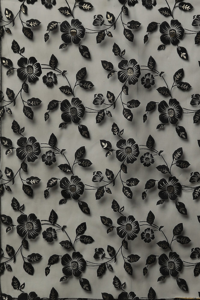 Black Zari Embroidered Sheer Straight Kurta and Skirt Set